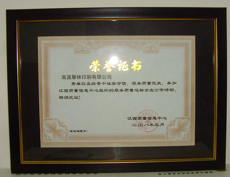 熱烈祝賀南昌擎林印刷有限公司評為首屆南昌市誠信單位!